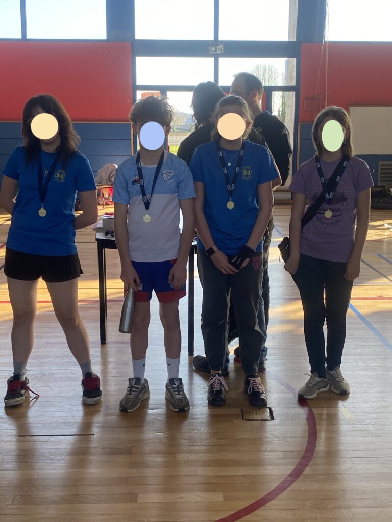 Les 13 élèves ont été médaillés (Or, argent, bronze) et récompensés pour leur performance. Ainsi 4 d’entre eux, Alice Chapelier, Oriane Picard-Lascaux, Léna Pécon et Clément Boissarie ont été sélectionnés pour les Championnats de France UNSS qui se dérouleront fin Mars à Riom (63). Mathéo Rochette a également validé son diplôme de Jeune Arbitre au niveau académique.